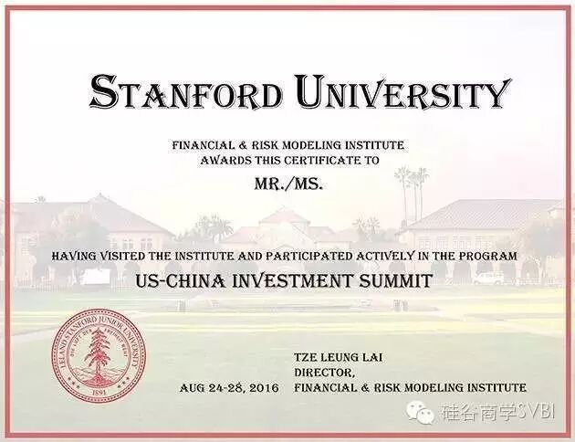 参加斯坦福大学培训的嘉宾将获得斯坦福证书